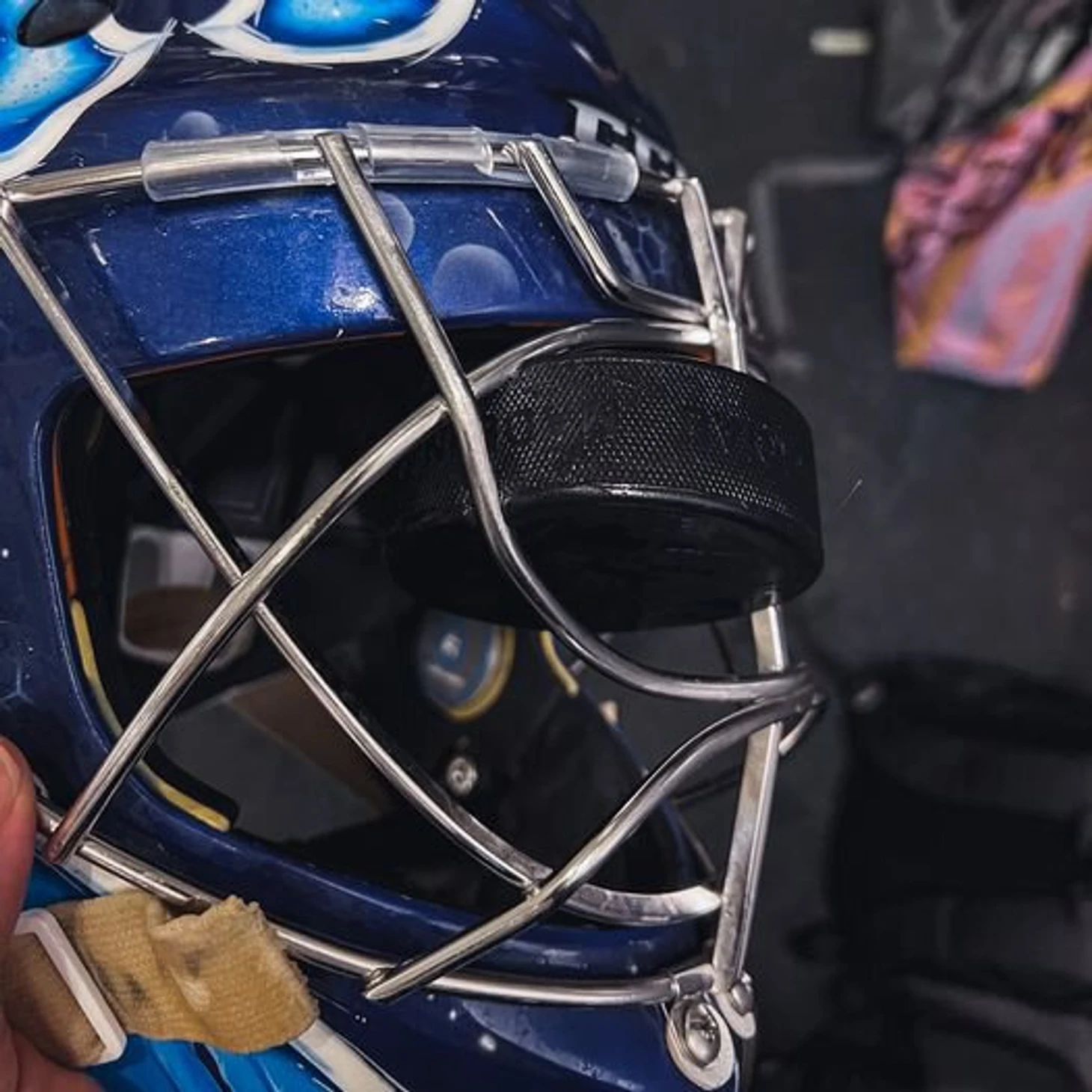 Шайба прошла сквозь решетку его шлема после броска соперника. Голкипер был госпитализирован с травмой головы.