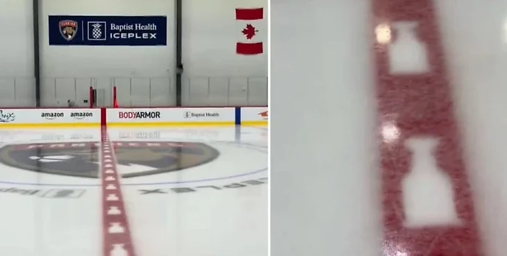 Центральную линию на тренировочном катке «Флориды» украсили изображениями Кубка Стэнли
