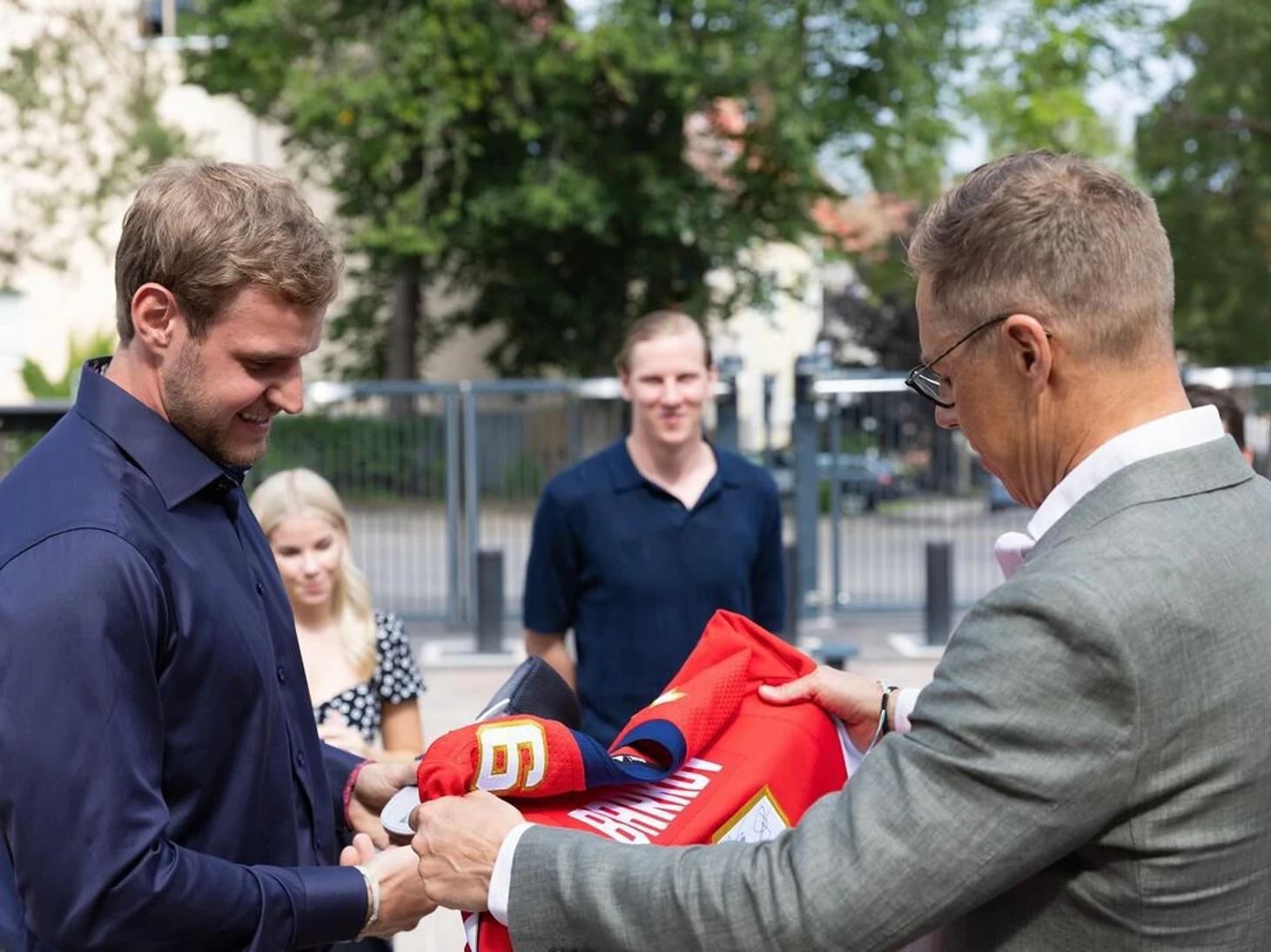 Президент Финляндии принял финских игроков «Флориды», выигравших Кубок Стэнли. Барков вручил политику свитер клуба