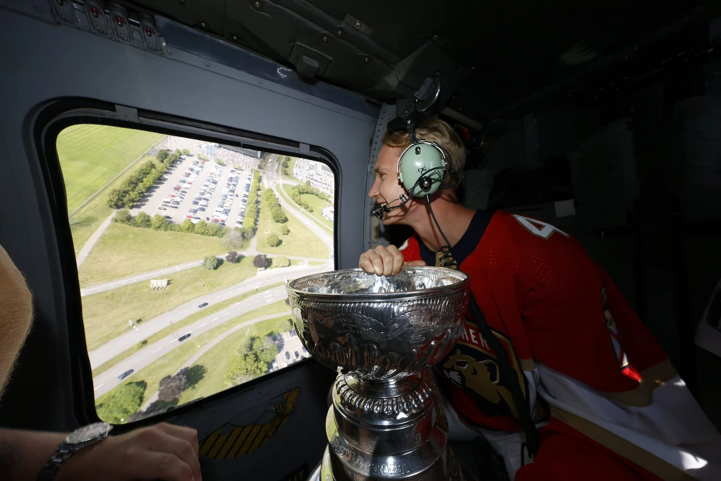Густав Форслинг прокатил Кубок Стэнли на вертолете над Швецией.