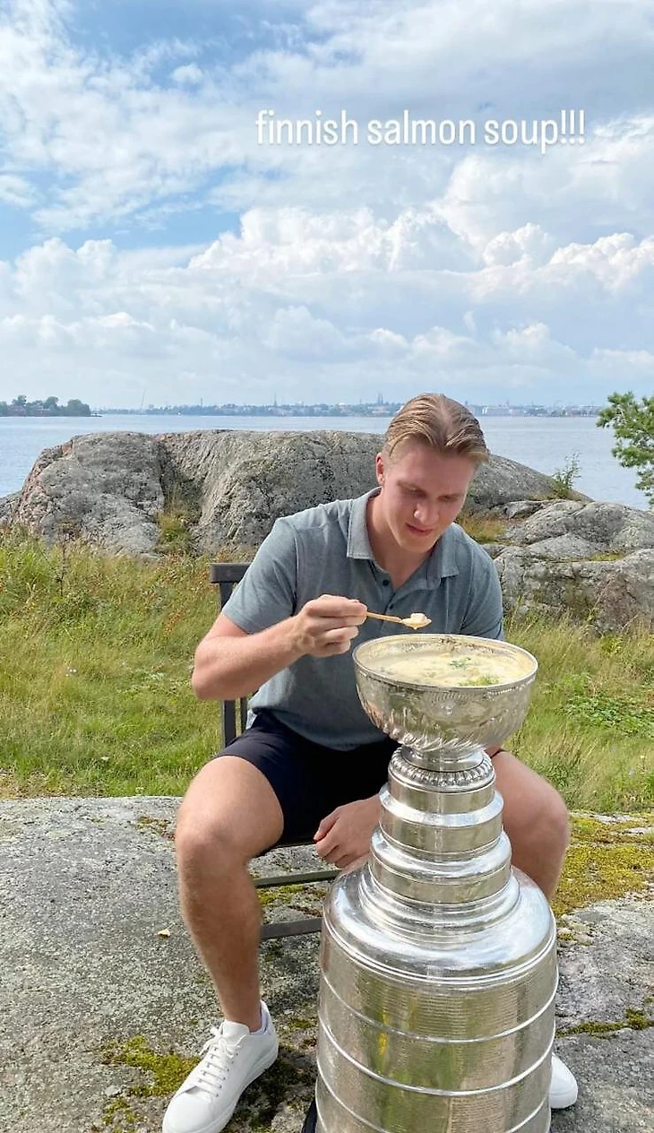 Антон Лунделль поел традиционный финский суп из Кубка Стэнли.