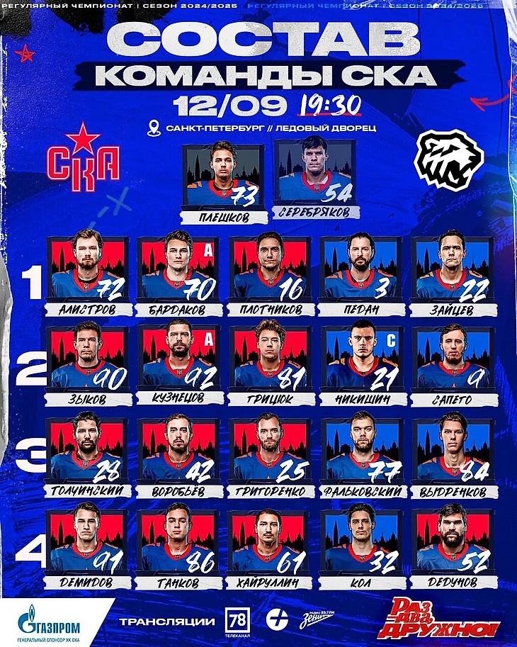 Кузнецов сыграет во втором звене СКА с Грицюком и Зыковым против «Трактора»