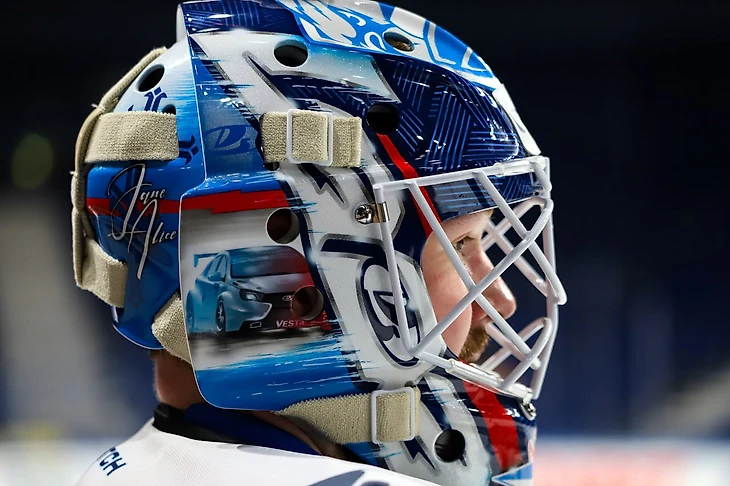 Вратарь «Лады» Максим Третьяк показал новый шлем: «Копейка» на конвейере, гоночная LADA Vesta, «ладья». Максимально тольяттинский шлем»