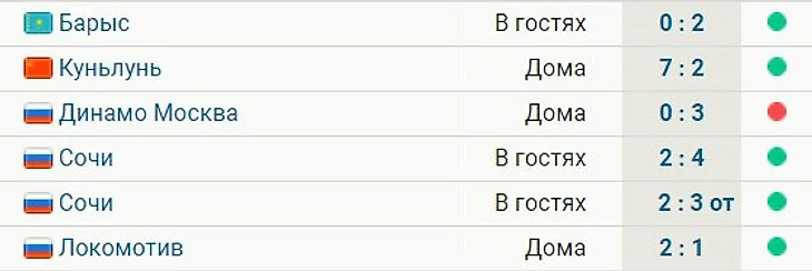 Это пятая победа команды тренера Павла Десяткова в шести последних играх.