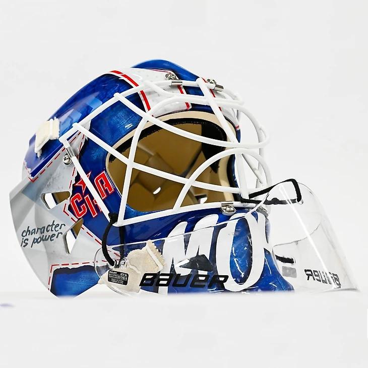 Мойсевич из СКА показал новый шлем. На нем изображен конь и надписи на английском языке