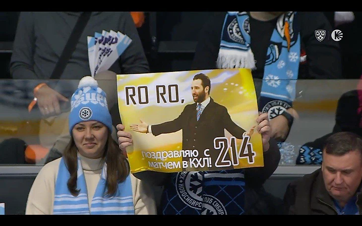 Болельщица «Сибири» поздравила Романа Ротенберга с 214-м матчем в КХЛ.