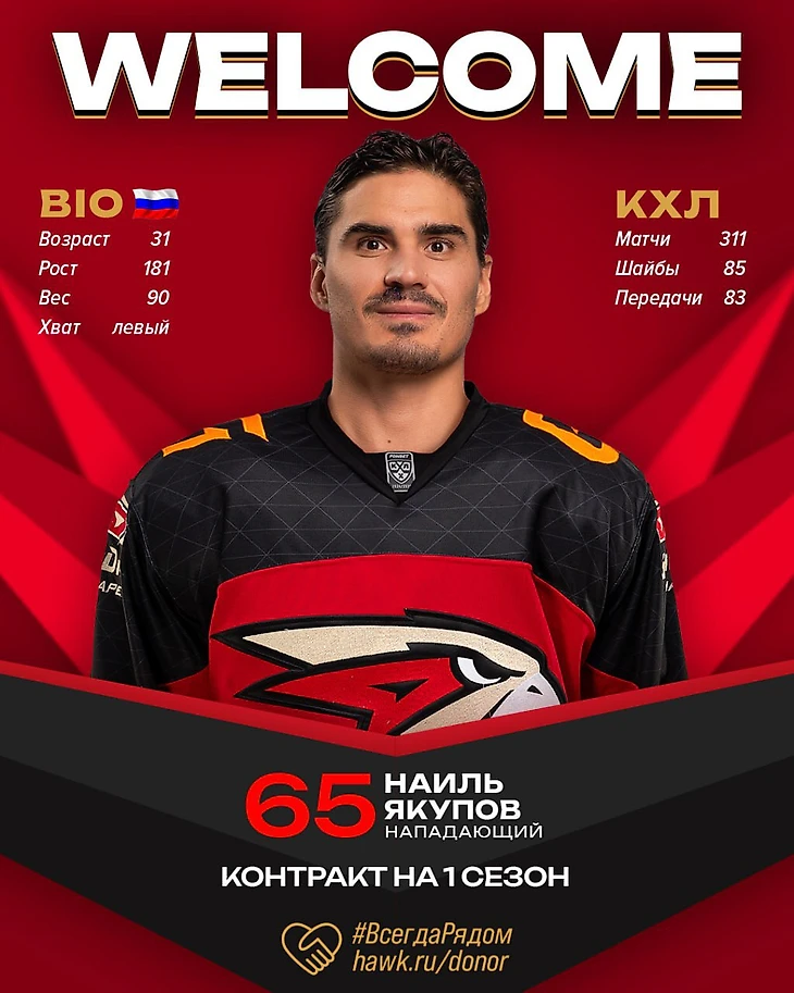 Якупов уже играл за клуб из Омска с 2020 по 2023 год. В нынешнем Фонбет Чемпионате КХЛ на счету нападающего 11 (7+4) баллов в 27 играх.