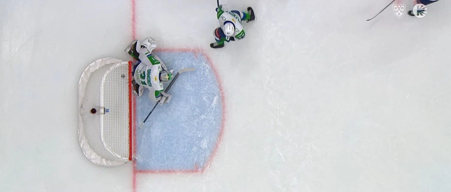 Нападающий выполнил бросок с отрицательного угла, шайба попала в ворота после рикошета от щитка голкипера «Салавата» Александра Самонова.