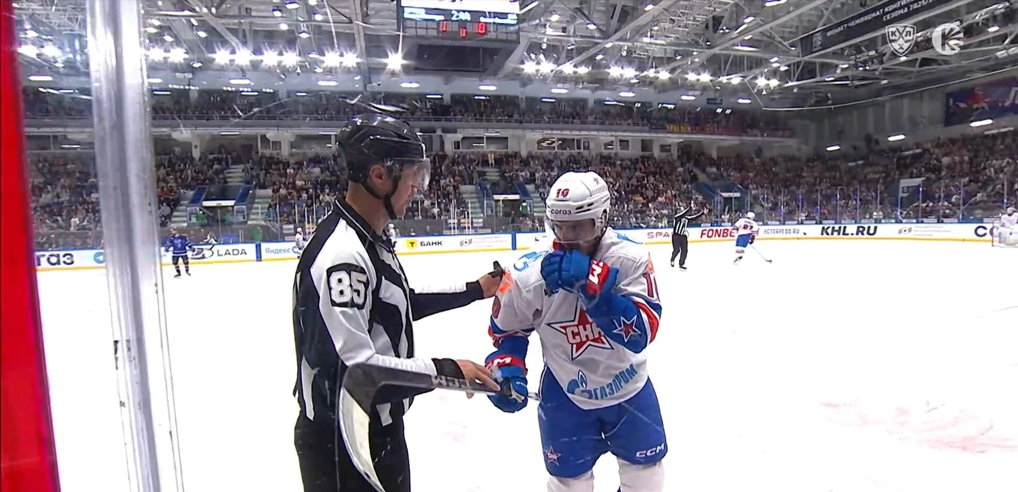Нападающий СКА Джозеф Бландиси удален до конца матча за неприличный жест.