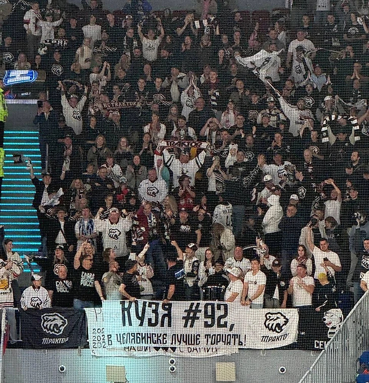 Болельщики «Трактора» во время игры обратились к воспитаннику клуба Евгению Кузнецову, растянув баннер с надписью: «Кузя #92, в Челябинске лучше торчать!»