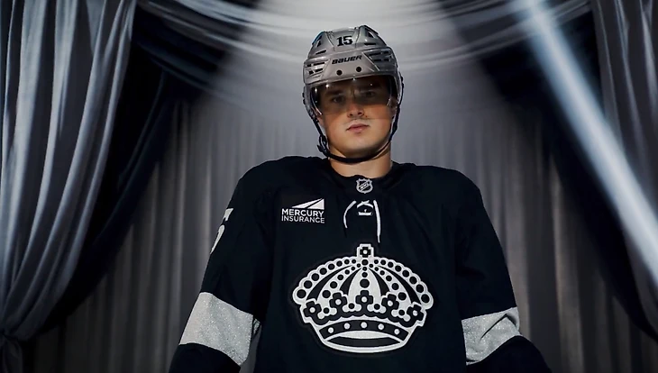 «Лос-Анджелес» представил 3-ю форму во время матча с «Колорадо». Игроки «Кингс» вышли на раскатку в черных джерси, а сыграли в новых – темных с короной в центре и серебристыми деталями