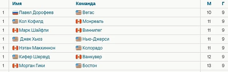 Американец делит лидерство в гонке снайперов лиги с группой игроков.
