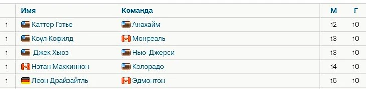 У 21-летнего форварда стало 16 (10+6) очков в 12 играх в текущем сезоне. Он делит 1-е место в гонке снайперов лиги с Коулом Кофилдом («Монреаль»), Джеком Хьюзом («Нью-Джерси»), Нэтаном Маккинноном («Колорадо») и Леоном Драйзайтлем («Эдмонтон»).