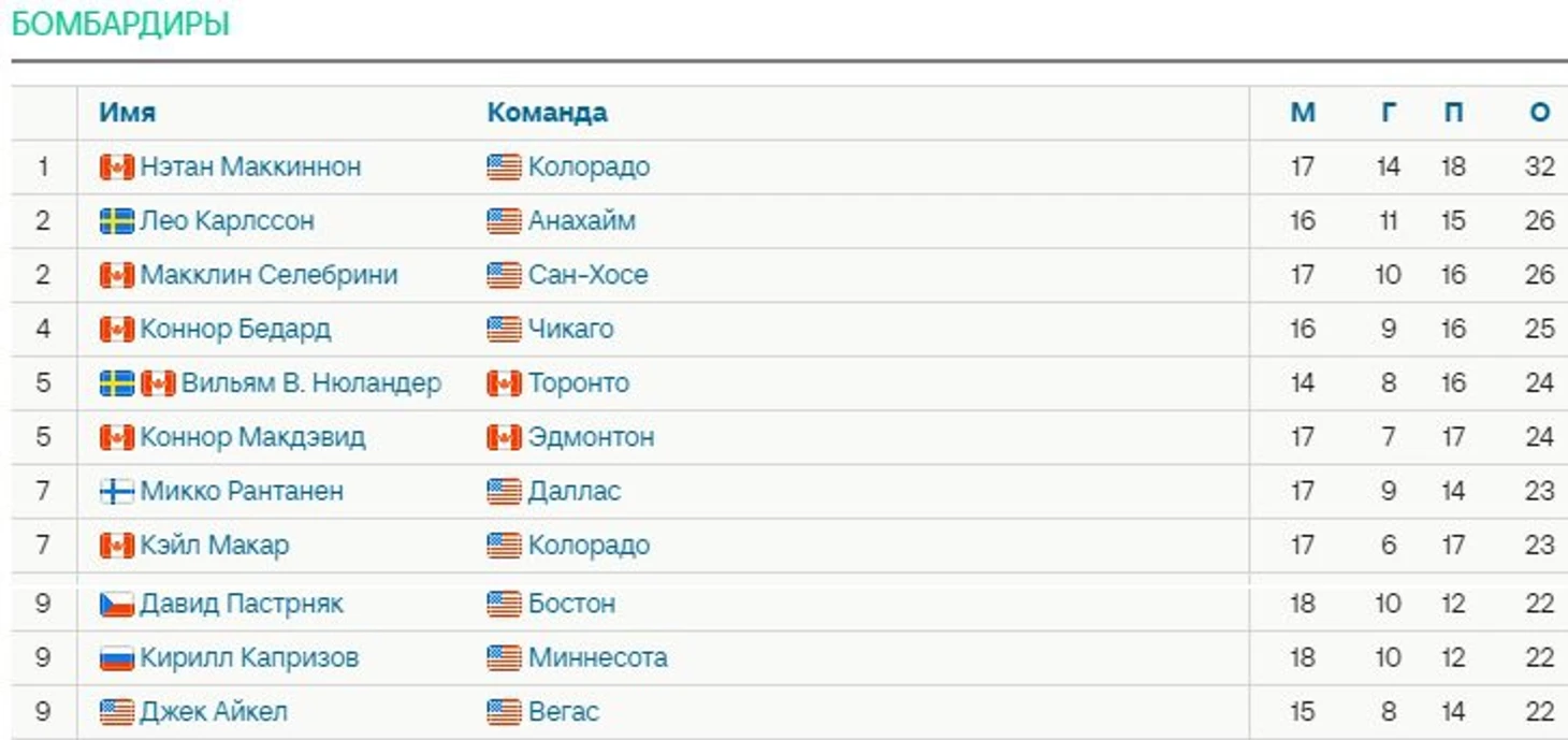 30-летний канадец первым в текущем сезоне лиги достиг отметки 30 очков. В 17 играх на его счету 32 (14+18) балла.