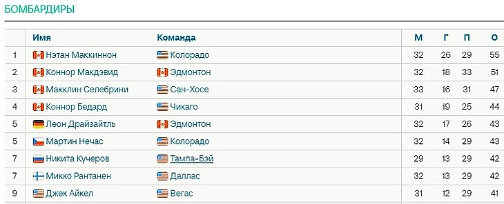 На счету 28-летнего канадца 51 (18+33) очко в 32 играх в текущем сезоне. Он лидирует в гонке ассистентов и сократил отставание от лидера гонки бомбардиров лиги – Нэтана Маккиннона из «Колорадо» – до 4 баллов.