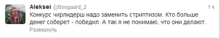 16.43 Выступила последняя группа поддержки в рамках «Битвы черлидеров» – минские девушки – и в принципе лучше всего это действо охарактеризовал Алексей Шевченко у себя в твиттере.