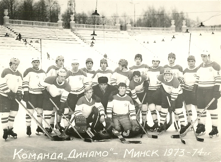 В основу данного эскиза была положено джерси, в котором минские динамовцы выступали в сезоне 1973/74. Оно было запечатлено на одной из первых сохранившихся фотографий той эпохи.