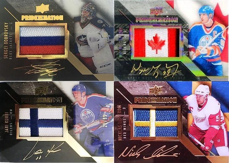 Популярная сейчас у Upper Deck тема с мануфактурными флагами нашла свое продолжение и в этой коллекции. Лично мне пока не надоело. Раз коллекции по сборным не выпускают, то пусть хоть так, тем более, что все карты с автографами. 35 карт, отличный чеклист и тираж от 99 экз. и менее. Попадается примерно 1 карта на 8 блоков. Есть также параллель: