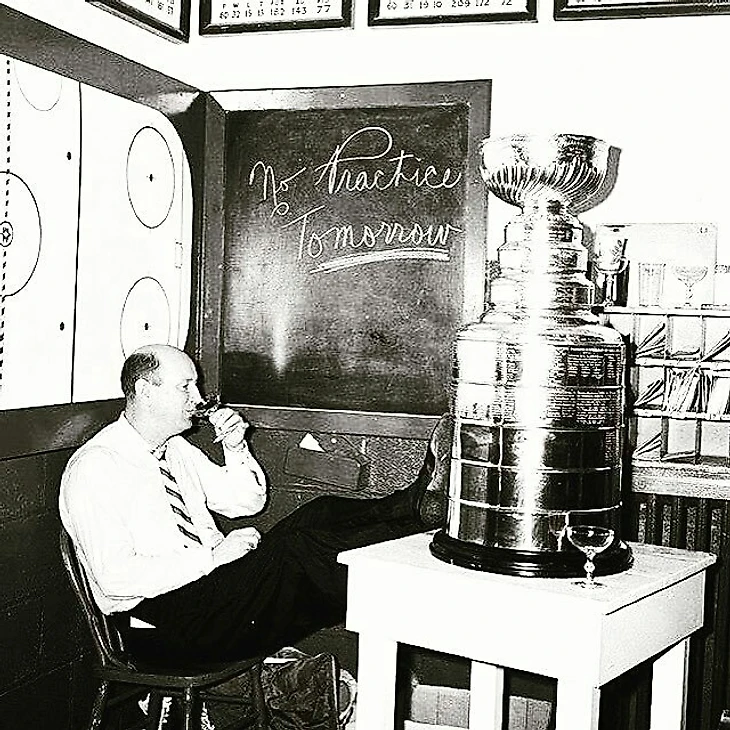 Главный тренер команды и Кубок Стэнли в раздевалке «Торонто». 1967 год.