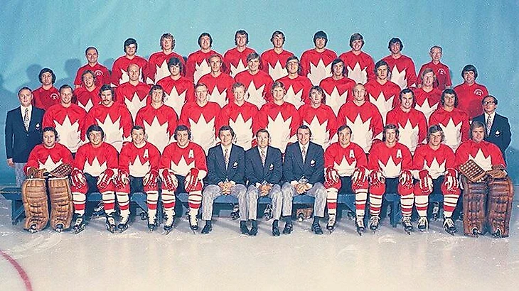 Коллективное фото сборной Канады перед суперсерией 1972 года.