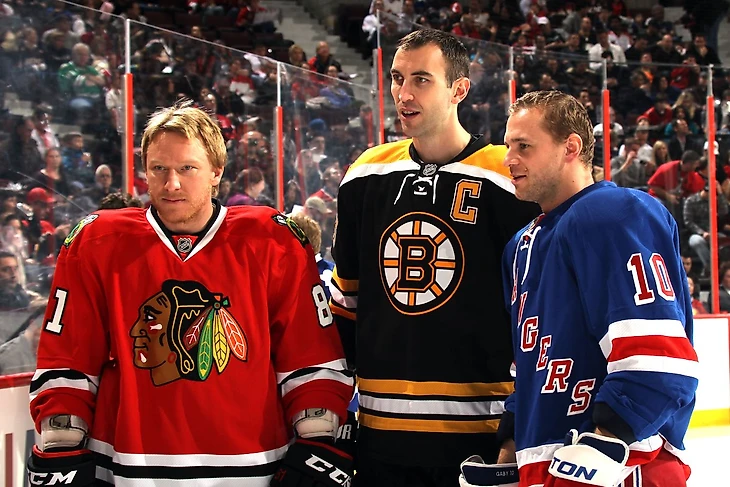 Мариан Хосса, Здено Хара и Мариан Габорик на Матче звезд НХЛ. 2012 год.