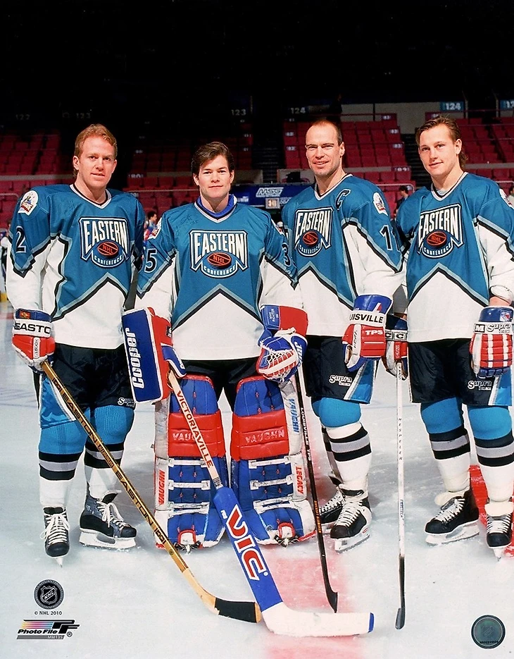 Игроки «Рейнджерс» на Матче звезд НХЛ в 1994 году. Слева направо: Брайан Лич, Майк Рихтер, Марк Мессье и Адам Грэйвс.