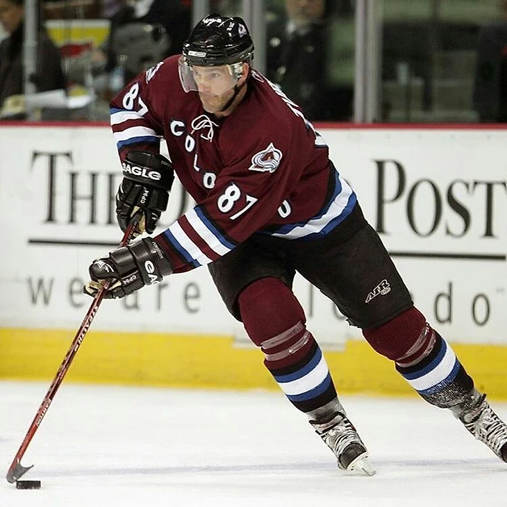 Пьер Тюржон на закате своей карьеры в составе «Колорадо». За «Эвеланш» форвард сыграл 79 матчей за два сезона, в которых набрал 53 (19+34) очка.