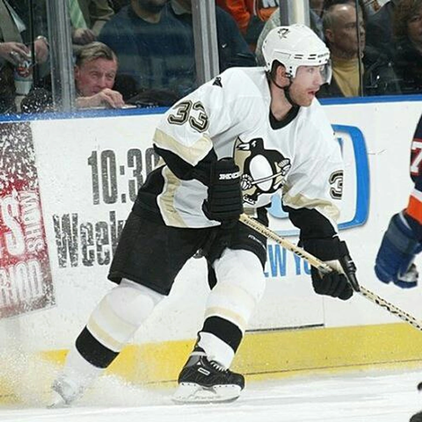 Жигмунд Палффи в составе «Питтсбурга». Сезон 2005/06. Нападающий сыграл за «Пингвинс» 42 матча, набрав 42 очка, после чего объявил о завершении карьеры в НХЛ.