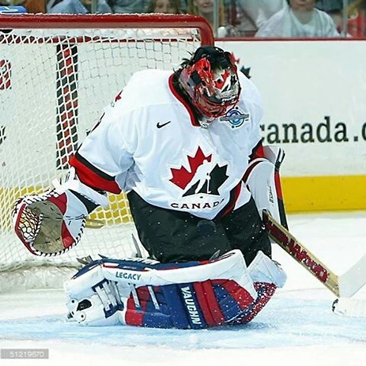 Жозе Теодор в выставочном матче Кубка мира-2004. На самом турнире голкипер не сыграл, будучи третьим голкипером сборной Канады после Мартина Бродо и Роберто Луонго.