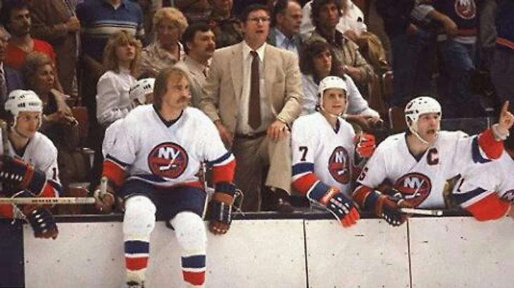 Эл Арбур и скамейка «Айлендерс» выражают недовольство решением арбитра.