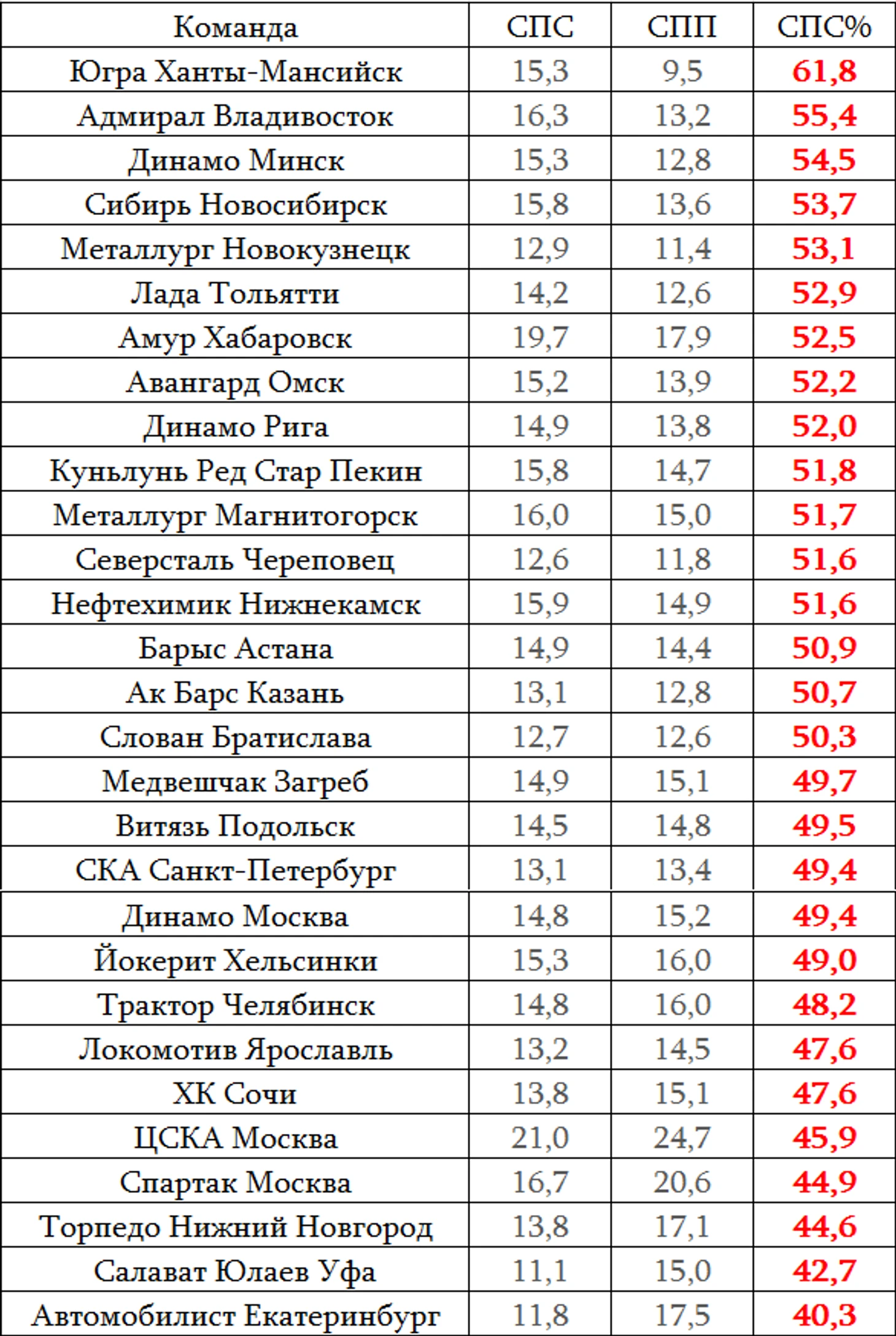 Здесь мы приведем данные клубов КХЛ по следующим корси-показателям: