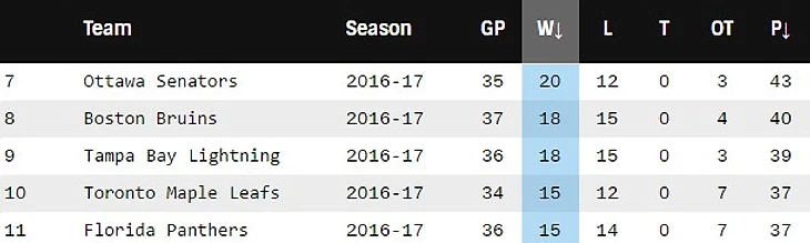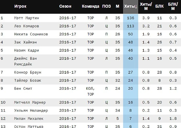 4) Обратимся к показателям corsi (shots on goal (броски в створ) + missed shots (броски мимо ворот) + blocked shots (заблокированные броски)): по этой статистике Торонто находится на 5-м месте с показателем - 1657 (к примеру, лидером по этой статистике является Бостон с показателем 1788), т.е. можно сказать, что Клиновые Листья одна из самых атакующих команд в лиге;