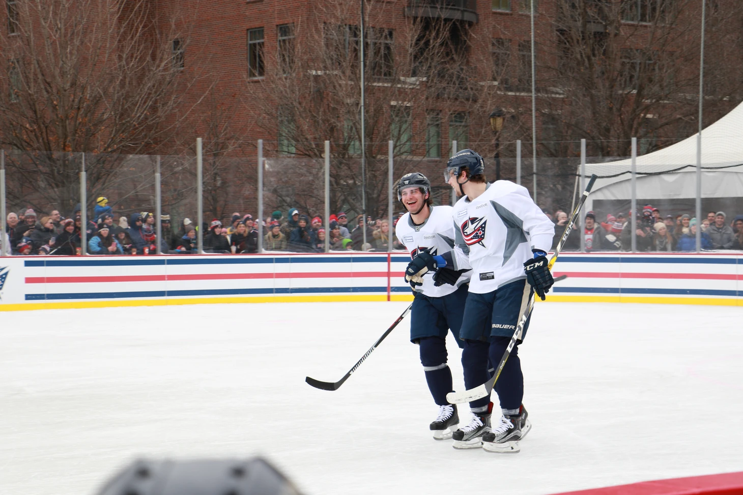 В пятницу хоккеисты «Коламбуса» провели ежегодную открытую тренировку на открытом воздухе. Несмотря на минусовую температуру и сильный ветер, сотни фанатов пришли посмотреть на своих любимцев, тренирующихся на катке в Зимнем парке неподалёку от домашней арены. Маленькие дети с румянцами на щеках сидели на плечах своих родителей, а взрослые фанаты вставали на носочки и вытягивали шеи, чтобы получше рассмотреть своих кумиров.