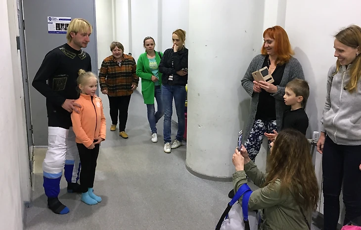 Перед матчем на льду ЛД «Большой» занимались юные фигуристки. Прознав, что в ледовом находится двукратный олимпийский чемпион Евгений Плющенко, они выстроили около раздевалки огромную очередь, желая заполучить автограф и фотографию со своим кумиром. Евгений, который, кстати, и сам занимается воспитанием будущих чемпионов, с удовольствием вышел осчастливить маленьких спортсменок, даже не успев полностью переодеться.