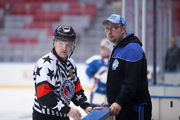 Судья выпрашивает клубную бейсболку у руководителя "Ледяных Волков":