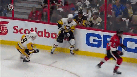 Капитану «Питтсбурга» не нужна клюшка, чтобы сохранить шайбу для своей команды – в начале третьего матча серии с «Оттавой» Кросби остался с пустыми руками, что не помешало ему подхватить шайбу и обвести соперника.
