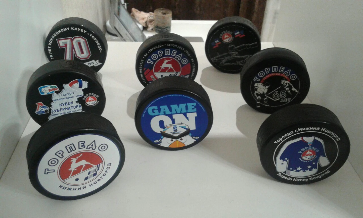 Сейчас коллекция небольшая. Большая часть - шайбы связанные с Торпедо. Шайба «Game on» куплена чисто из-за крутого принта. Хотя потом есть мысль собирать отдельную коллекцию с маскотами.