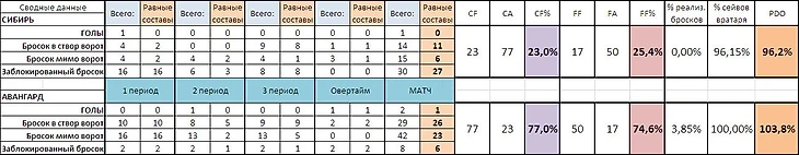 Почитал отчет Дмитрия Ерыкалова о дерби, такое ощущение, что мы смотрели разные матчи. Он пишет, что состав «Авангарда», который вышел на матч в Новосибирске, предан главному тренеру, но по сумме мастерства вряд ли чем-то превосходит «Сибирь». Тут нужно поставить много знаков вопросов, статистика нам говорит о том, кто доминировал, а кто весь матч отбивался в равных составах. К слову 30 минут 43 секунды чистого игрового времени Сибирь не могла нанести ни одного броска по воротам Авангарда, я с таким сталкиваюсь впервые. Двигаемся дальше.