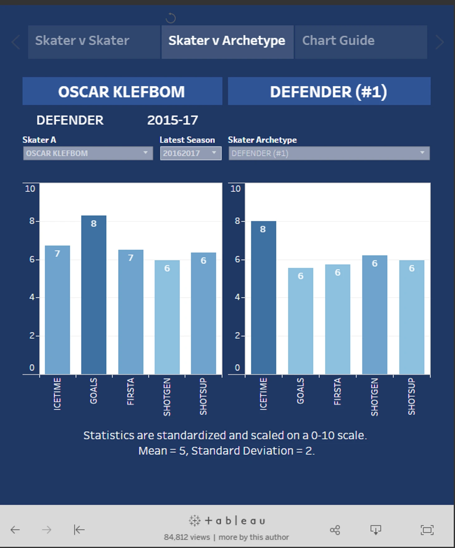 Пару Клефбом-Ларссон нет смысла разбивать, две шведских башни отлично дополняют друг друга. Клефбом наконец-то провел полный сезон и выдал серьезную результативность. Его 38 очков в 82 матчах лучше любых слов. К слову, любопытное сравнение от Hero Charts: