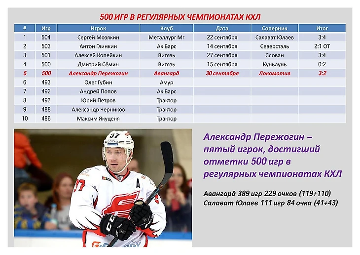 Александр Пережогин - 500 игр в регулярке КХЛ