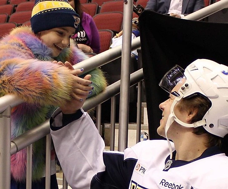 Нейробластома – злокачественная опухоль, диагностируемая в подавляющем большинстве случаев у детей до четырнадцати-пятнадцати лет. Клиническая картина болезни такова, что даже один рецидив радикально снижает шансы на выздоровление, отводя пациенту не более пяти лет. Арианна, чьи бойцовские качества не раз становились предметом восхищения профессиональных спортсменов, при четырех рецидивах жила уже восемь. В моменты непреодолимых физических страданий на плаву помимо прочего помогал держаться хоккей, к страстным поклонникам которого она себя причисляла, сердце же девочки - безраздельно принадлежало главной звезде «Сент-Луиса», человеку с лучшим кистевым в лиге большого таланта и не менее большой души. Правый вингер, часто навещавший ее в больнице и искренне к ней привязавшийся, не был врачом, но он умел улыбаться и проявлять участие, а подобная терапия - не знает аналогов.