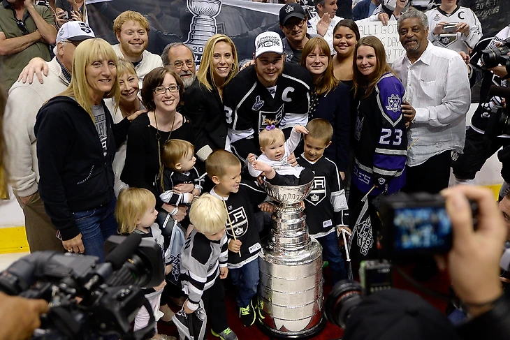 Спасибо болельщикам, которые ждали кубок Стэнли около 50 лет, моей жене и детям, для которых Лос-Анджелес стал домом, и моим родителям. Моя мама была медсестрой скорой помощи, а отец владел баром, а также отвозил меня на хоккейные тренировки и забирал меня с них. Он не являлся большим фанатом хоккея, никогда не заставлял меня играть и не учил, как надо играть – он просто хотел, чтобы мне это нравилось. Я сам теперь отец и понимаю, как важно такое отношение к своему ребенку.