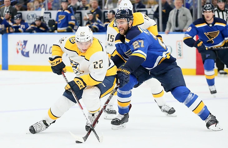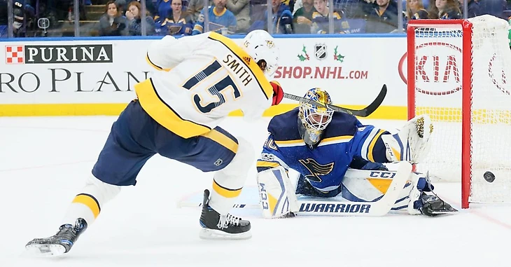 Главный тренер “Блюз” Майк Йео и его обновленный штаб просто прекрасно запустили “Блюзменский” сезон, взяв прямо с места в карьер. Они здорово справились с одновременной потерей Робби Фаббри, Патрика Берглунда, Джея Баумистера, Александра Стина, и Зака Сэнфорда, чтобы взлететь до долгосрочного лидерства в традиционно мощном Центральном дивизионе. Но тяжелая травма голени Джейдена Шварца в матче с “Детройтом” не оставила им выбора, кроме как постоянно перетасовывать уже наигранные сочетания нападающих, которые в какой-то момент практически совсем перестали забивать голы.