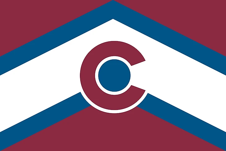 На флаг штата Колорадо наложены горный узор со свитеров команды и ее альтернативный логотип.