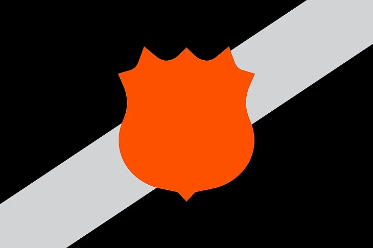 В НХЛ есть логотипы, неподвластные времени, как эта клюшка на фоне силуэта катка. На втором плане они также образуют буквы V и C, символизирующие название команды. Это еще один случай, когда лого может работать флагом без каких-либо изменений.