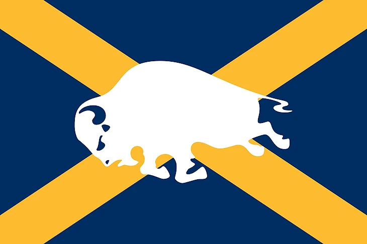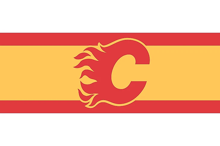 Основа для дизайна – флаг города Калгари. Есть также альтернативная версия с участием черного цвета.
