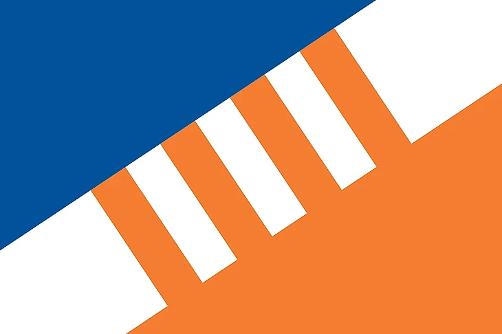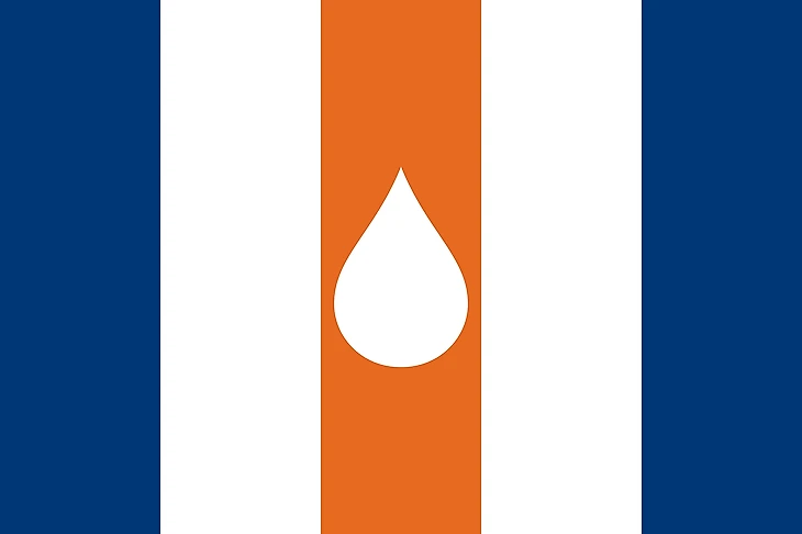 Основа дизайна – полосы на свитере команды и внешний вид флага Эдмонтона. 5 полос символизируют 5 побед в Кубке Стэнли, а капля взята с логотипа «Ойлерс». Есть альтернативная версия с «перевернутыми цветами».