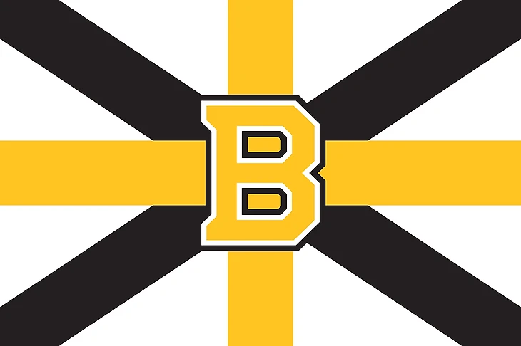 Этот флаг основан на различных версиях логотипа «Брюинс» в виде буквы B с лучами. Итоговый дизайн вдохновлен британским флагом – «Юнион Джеком».
