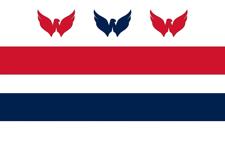 У столицы США один из самых замечательных флагов во всем мире. Этот флаг сочетает в себе дизайн города Вашингтона с расцветкой полос в стиле белого свитера клуба и вторыми логотипами вместо звезд.