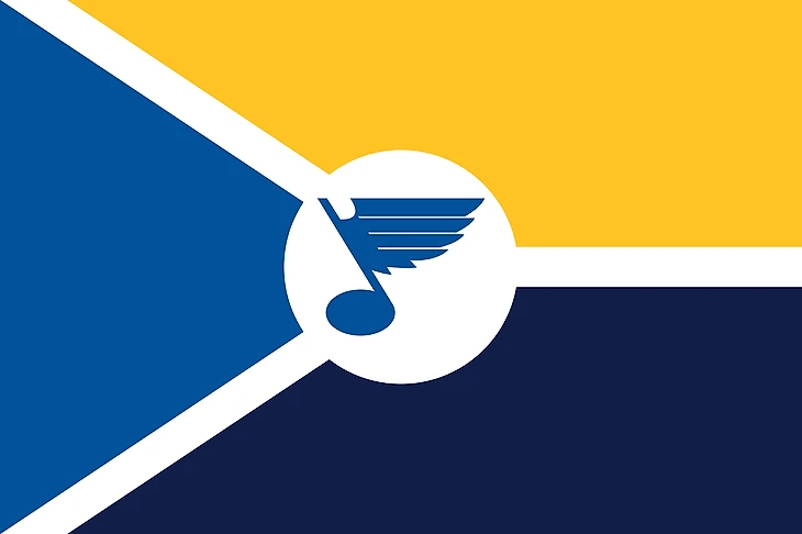 Упрощенная версия флага города Сент-Луиса, выполненная в клубных цветах. Вместо лилии – логотип «Блюз».